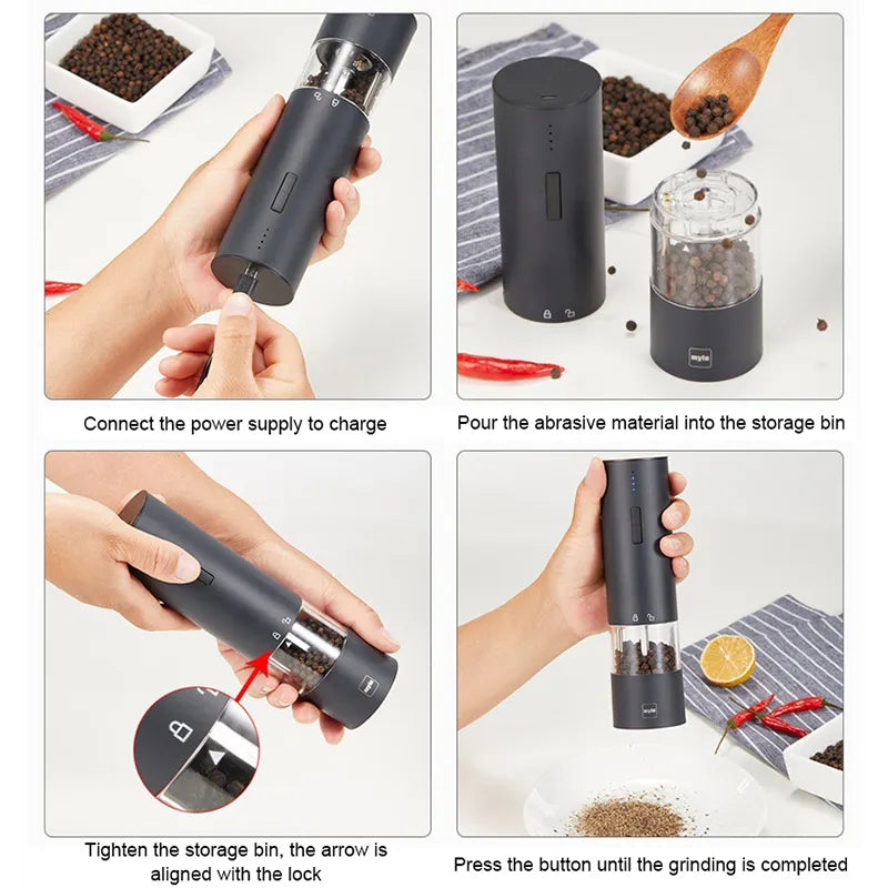 USB Charging Electric Salt Pepper Stainless Grinder with Automatic Spice Grinding